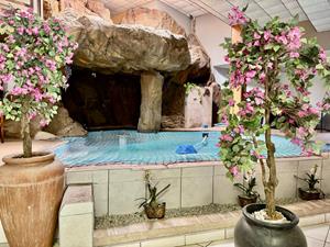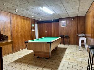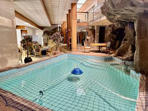 The lower floor is a highlight of the property, featuring an expansive 650 m2 entertainment area. With a dance floor and pool table, this versatile space is perfect for hosting events or serving as a training venue. The indoor pool, adorned with stunning rock art, adds a touch of luxury. Ample storage spaces, a large cellar, and outdoor toilets and showers for staff further enhance the property's functionality.