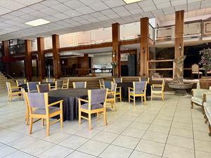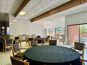 At the heart of the guesthouse is a well-equipped kitchen, complete with a laundry room and all necessary appliances. Guests can savor their meals in the spacious dining area or at the buffet station. A welcoming waiting area and an office counter ensure smooth and efficient operations.