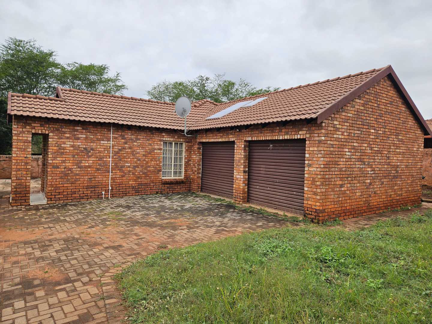 The home is equipped with solar panels, providing an eco-friendly energy solution. However, an inverter will need to be installed to complete the system.