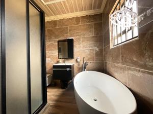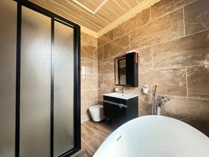Step into the heart of the home where the kitchen exudes charm with its spacious farm-style design and a 5-plate gas stove. This kitchen is ideal for culinary enthusiasts and leads seamlessly into a cozy entertainment area featuring a built-in bar – perfect for hosting gatherings with family and friends.