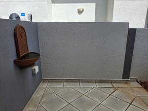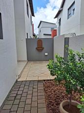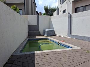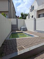 - The living room opens onto a covered patio with a built-in braai, overlooking a sparkling pool and a neatly maintained small garden—perfect for entertaining.