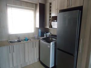 The unit features two spacious bedrooms with melamine built-in cupboards and tiled flooring, offering a contemporary feel. A full bathroom includes a shower, bath, basin, and toilet, meeting all your needs with modern flair. Enjoy the convenience of pre-paid electricity, allowing for easy budget management.