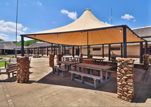 The 32-stand camping site is a paradise for outdoor lovers. It features a large swimming pool, expansive lawn, and substantial boma and braai area. The campsite is divided into nine sections, each with its own ablution block, ensuring privacy and convenience for all campers.