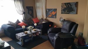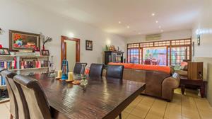 As you step inside, you'll be greeted by three generously sized bedrooms, each thoughtfully designed with elegant laminated wooden floors, built-in cupboards, and air conditioning to ensure ultimate comfort. For those who work from home or require a dedicated study area, a separate study room is available, complete with laminate flooring and air conditioning. The open-plan TV room and dining area create a warm and inviting atmosphere that is perfect for family gatherings. The well-appointed kitchen features ample wooden cabinetry and a scullery/laundry area, all finished with stylish tiles for a touch of sophistication.