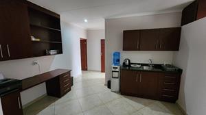 Sleek, modern kitchen with an additional kitchenette upstairs