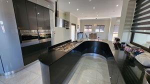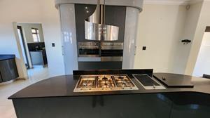 Chef’s Kitchen: Very modern kitchen with high-end finishes, custom cabinetry, a gas stove and hob, two built-in eye-level ovens, and a separate scullery for added convenience.