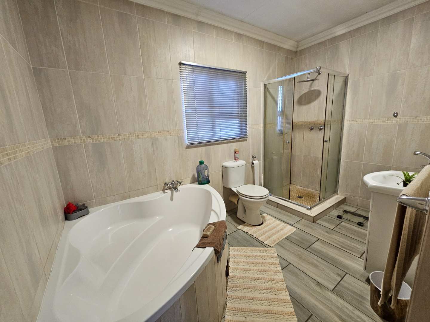 Step inside to discover three well-appointed bedrooms, each equipped with ample cupboard space, ensuring plenty of room for all your belongings. The master bedroom features an ensuite bathroom complete with both a bathtub and a shower, providing a luxurious retreat for relaxation.