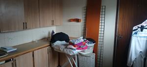 The heart of the home is a beautifully appointed kitchen, featuring elegant cherry wood finishes, a scullery, and a pantry cupboard. For added convenience, there is a laundry room with an adjoining ironing area, perfectly designed to meet all your household needs.