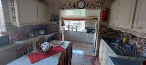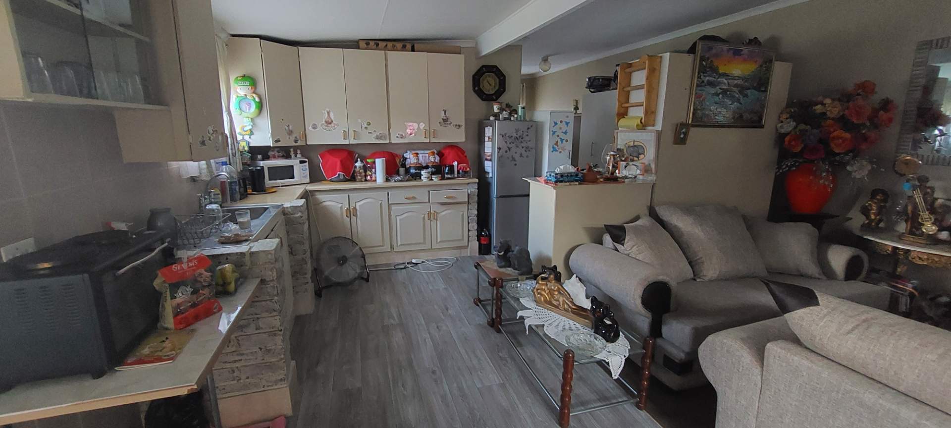 Open plan Kitchen/ Lounge with a lot of built in cupboards.
