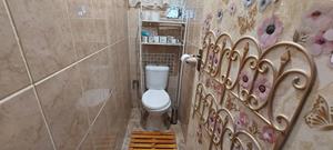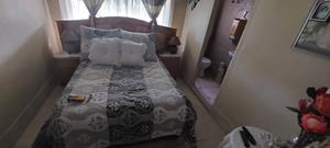 Bedroom with bathroom that consist of shower,basin and toilet.