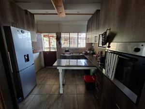 The main house features three well-sized bedrooms and a full bathroom designed for functionality. The inviting lounge and dining room boast elegant parquet flooring, creating a warm and welcoming atmosphere for family gatherings and entertaining guests. The kitchen is equipped with modern melamine cupboards, durable Formica tops, and a reliable oven and cooktop, making meal preparation a breeze.