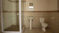 - Bathroom Has a freestanding toilet and basin with an over-the-sink mirror unit to keep your toiletries close to hand. Large glass shower cubicle, standard showerhead and towel railing within grabbing distance. Build-in closet for holding all your towels, paper rolls, and bigger sized accessories. The small window adds natural light and ventilation that helps to stops the mirror from steaming up. Tiled walls and floor for easy maintenance and the overhead light fitting provides adequate brightness.