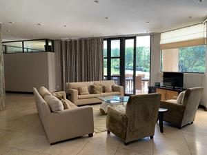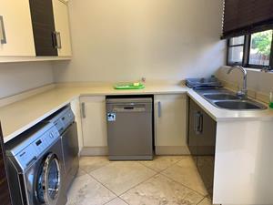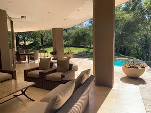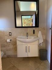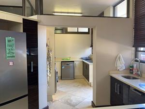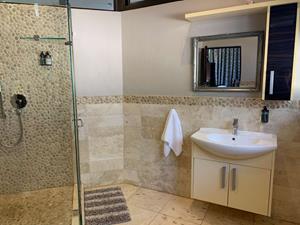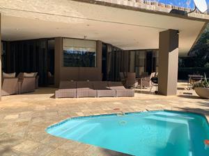 This spacious home boasts four generous bedrooms, each with its own en-suite bathroom. The bedrooms open up to either a lush garden or a private patio, providing a seamless indoor-outdoor experience. Each room is equipped with air conditioning and baboon mesh for added comfort and safety. The bathrooms are elegantly designed, featuring a combination of baths and showers.