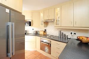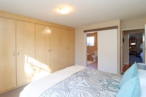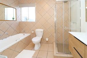The kitchen is neat and practical, and the bedrooms offer comfortable proportions with built-in cupboards. The main bedroom features an en-suite bathroom for added privacy, while the second bathroom is conveniently positioned for family or guests.
