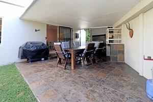 Step inside to a welcoming open-plan living and dining area with warm tones, clean finishes and plenty of light. The dining area flows effortlessly to a covered patio that’s ideal for relaxed weekend braais or evening get-togethers. It boasts both a built-in braai and enough space for a large table, so you can entertain rain or shine.