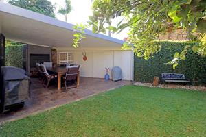Outside, the covered entertainment space opens onto a small, easy-to-maintain garden just perfect for kids or pets to play safely.