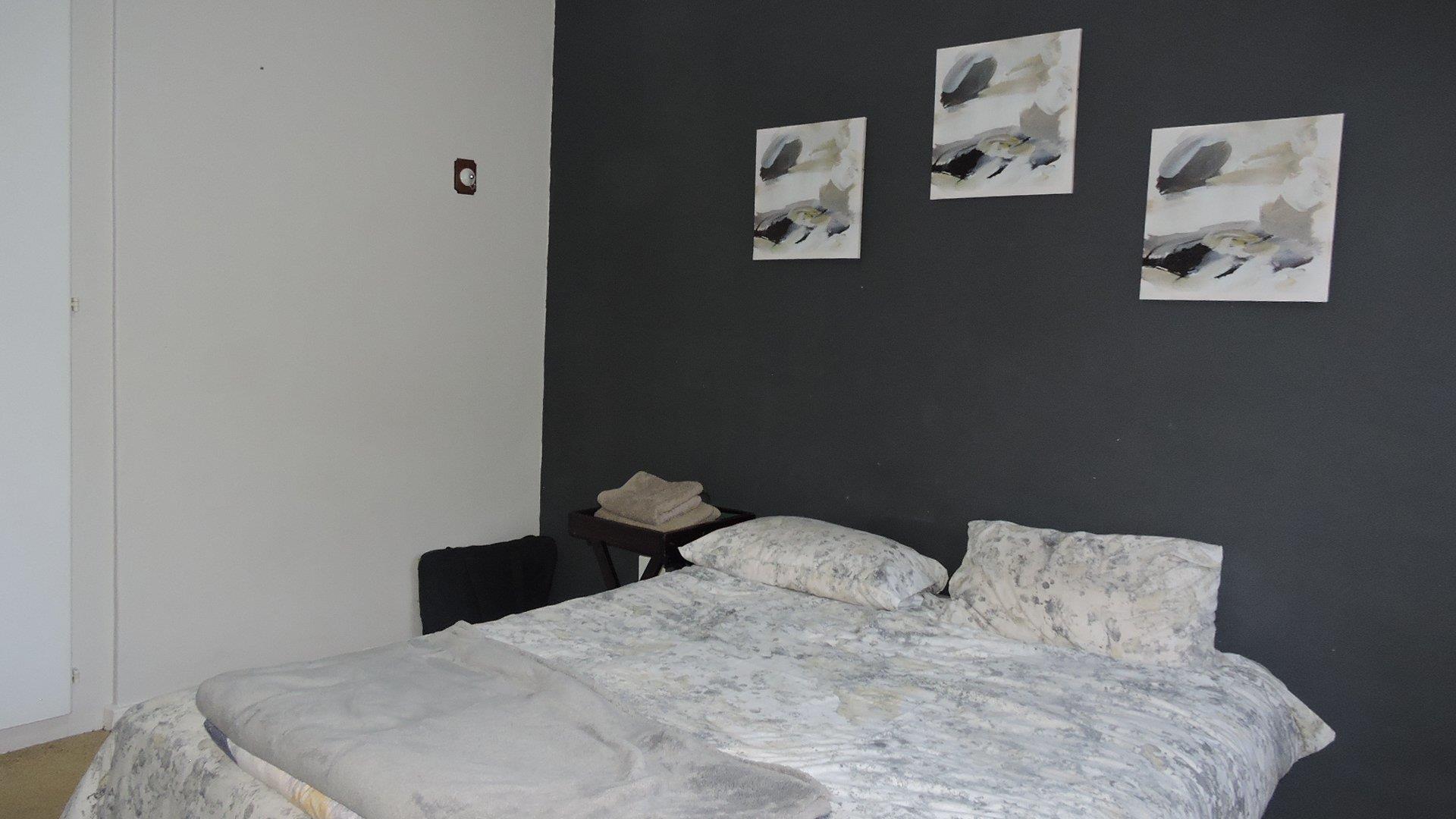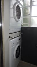 The bedrooms are designed with relaxation in mind, featuring built-in cupboards and cozy carpets that create a warm and inviting atmosphere. The bathroom has a shower, basin, and toilet, and it includes space for two appliances such as a washing machine and tumble dryer, adding to the home's practicality.