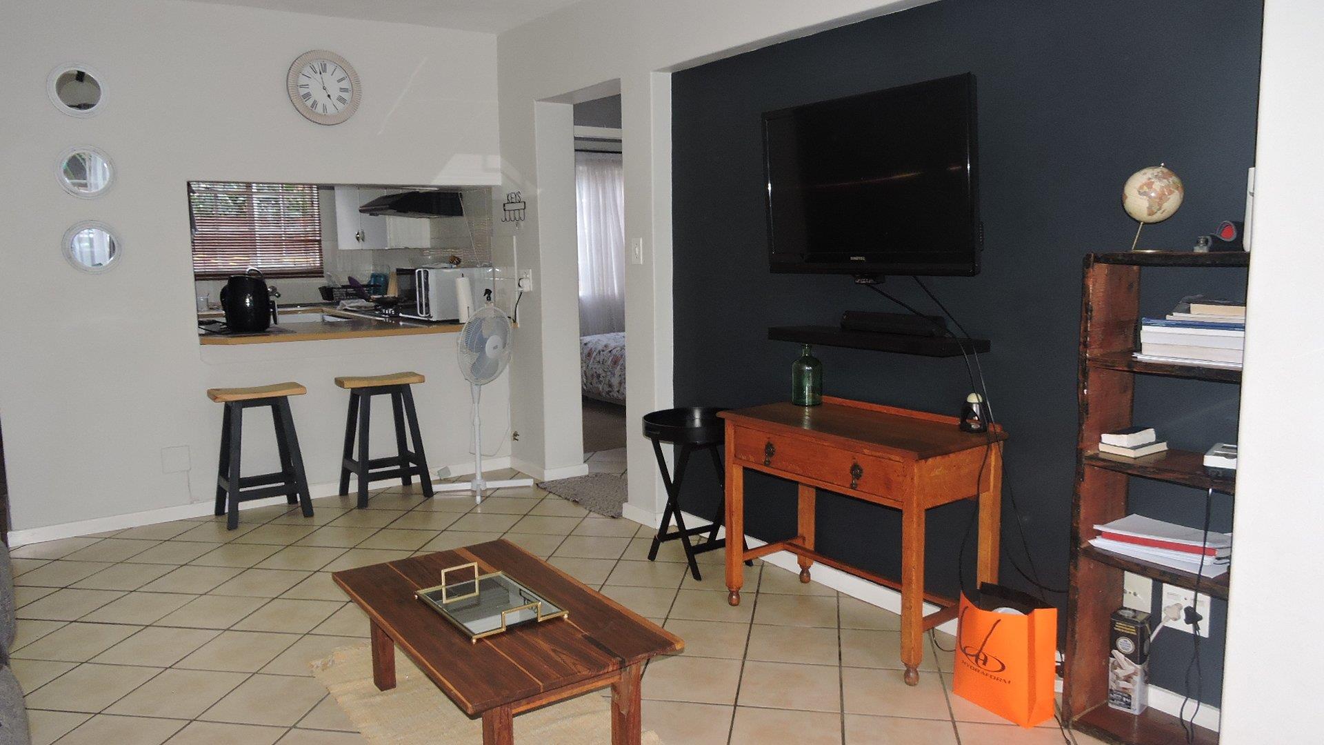 The living area seamlessly extends into a charming garden, providing a refreshing outdoor space perfect for unwinding. The kitchen, equipped with a gas stove, is efficiently designed and opens up to a small backyard that is perfect for laundry needs.
