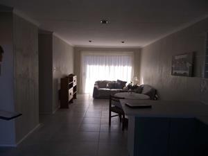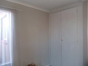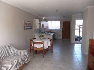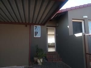 The kitchen is open plan to the light filled living room that has sliding doors that open to the back garden. The garden is just big enough for some flower beds on the one side and has a covered patio side where you can braai and entertain friends and family.