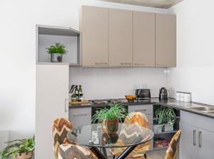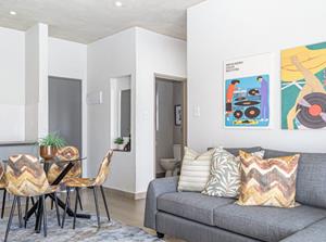 Our 2-bedroom, 2-bathroom units are particularly enticing, boasting contemporary bedrooms complete with built-in cupboards for all your storage needs. The bathrooms are designed to be neat and sleek, offering a tranquil space to unwind. The kitchen is a modern, open-plan layout that seamlessly flows into a cozy lounge area, perfect for entertaining or relaxing after a long day.