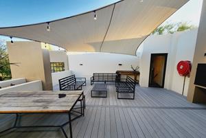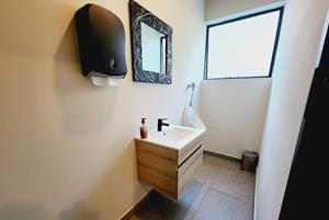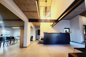 On the first floor, you'll find a spacious boardroom that opens up to a large balcony through stack doors, providing an excellent venue for meetings or corporate events. The elegant entrance hall leads to one executive office, a secondary kitchen, and a bathroom with a separate toilet area. An entertainment deck complements the floor, making it ideal for hosting clients or staff gatherings. Additionally, this level includes 60 compact offices and an open plan workspace that encourages collaboration and productivity.