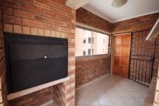 A spacious living room / lounge with sliding door that leads onto a covered balcony that as a built-in-braai.