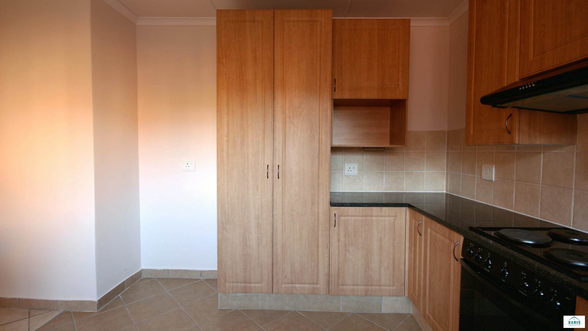 This unit has a spacious living room / lounge with security gate that leads onto a covered balcony that as a built-in-braai. This unit is a loose standing unit with a private entrance (No upstairs or downstairs neighbors).