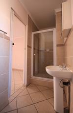 The spacious main bedroom features built-in cupboards and an en-suite bathroom with a toilet, basin, and shower. The second bedroom is also a good size with built-in cupboards, and the second bathroom includes a toilet, basin, and bath.