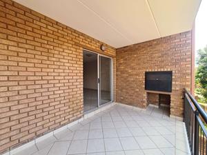 This modern 2-bedroom, 2-bathroom unit features an open-plan kitchen, dining, and living area that flows onto a covered balcony with a built-in braai—perfect for entertaining or relaxing.