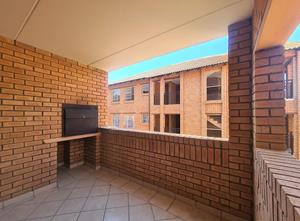 The living/dining area opens onto a covered balcony with a built-in braai.