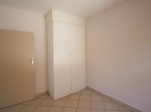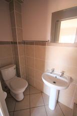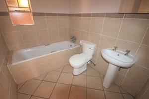 The remaining bedroom is a medium-sized room with built-in cupboards. The second bathroom is a shared bathroom complete with a toilet, basin, and bath