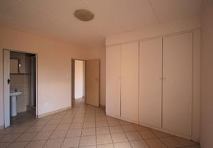 A wonderful and spacious master bedroom with built-in cupboards - En suite bathroom with contemporary white toilet, basin, and shower.