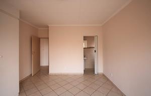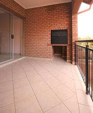 A spacious living room / lounge with sliding door that leads onto a covered balcony that as a built-in-braai.