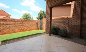 This unit has a spacious living room/lounge with a sliding door and security gate that leads onto a covered patio that has a built-in-braai and a private garden.