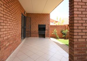 Karis Properties is proud to present this modern 2-bedroom, 2-bathroom ground-floor apartment with an open-plan kitchen, dining, and living area leading to a covered patio with a built-in braai and private garden.