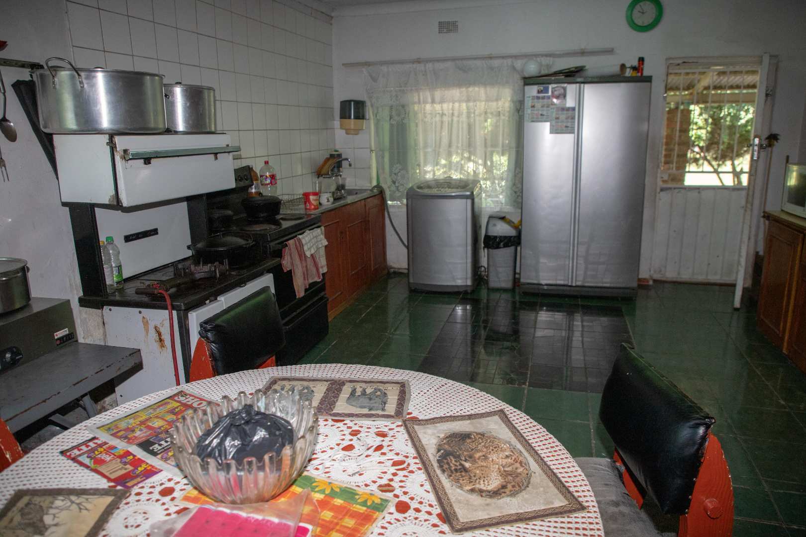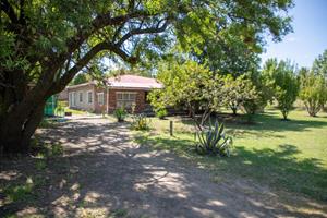 The main residence is set on a spacious stand with plenty of potential for future upgrades and improvements. It features an open-plan lounge and dining area with carpets, a kitchen fitted with built-in cupboards and an AGA stove—perfect for chilly Free State winters—Four bedrooms, and two bathrooms. There is a storeroom on the property, but no garage.