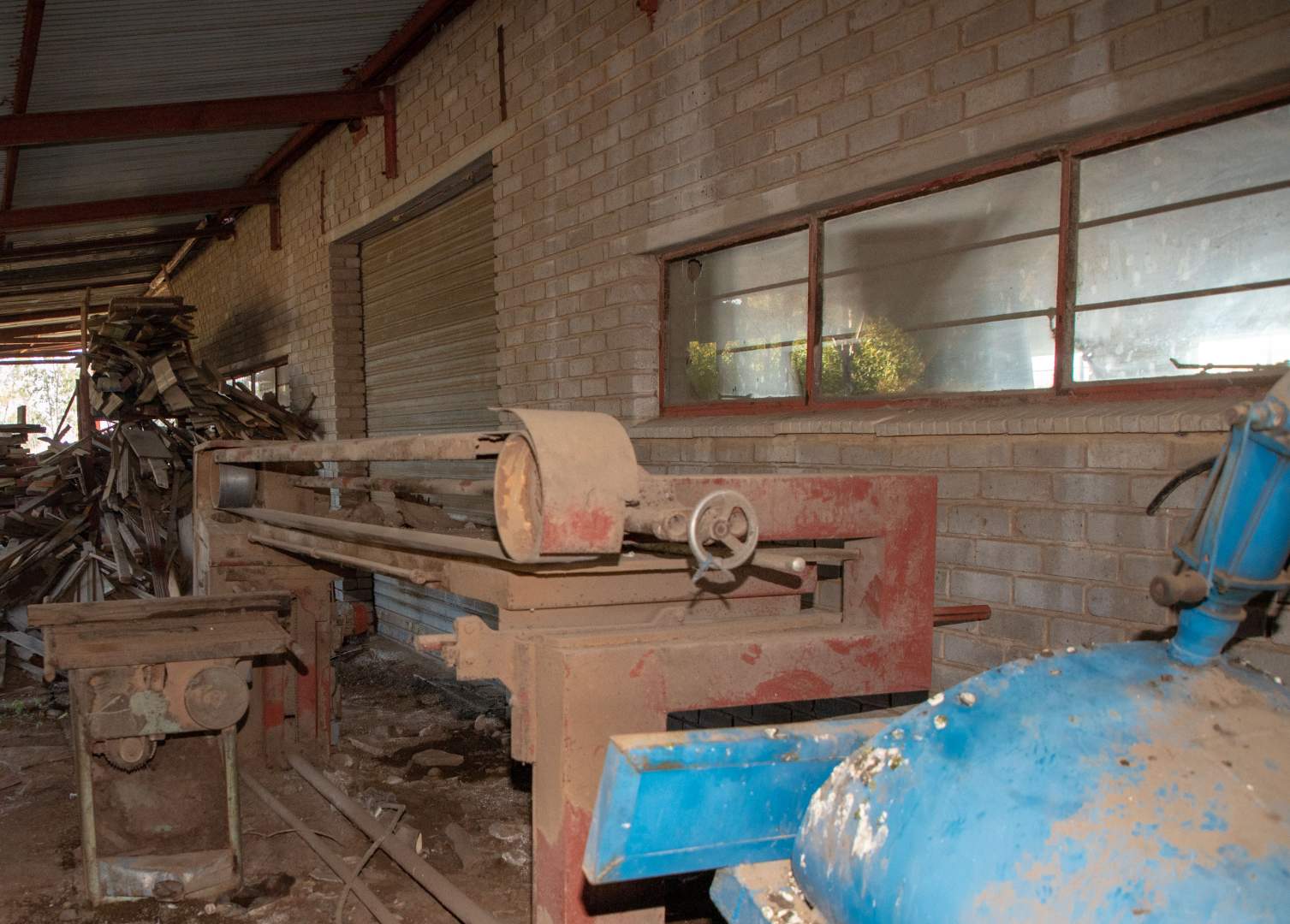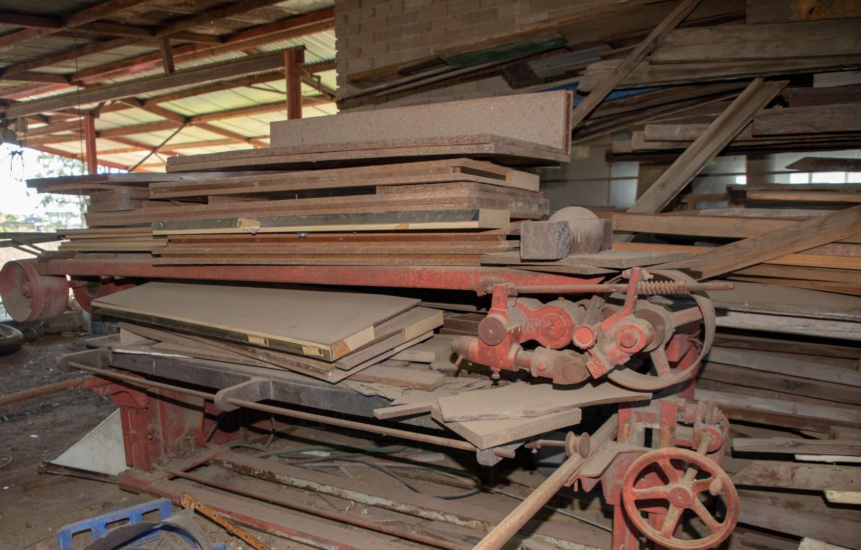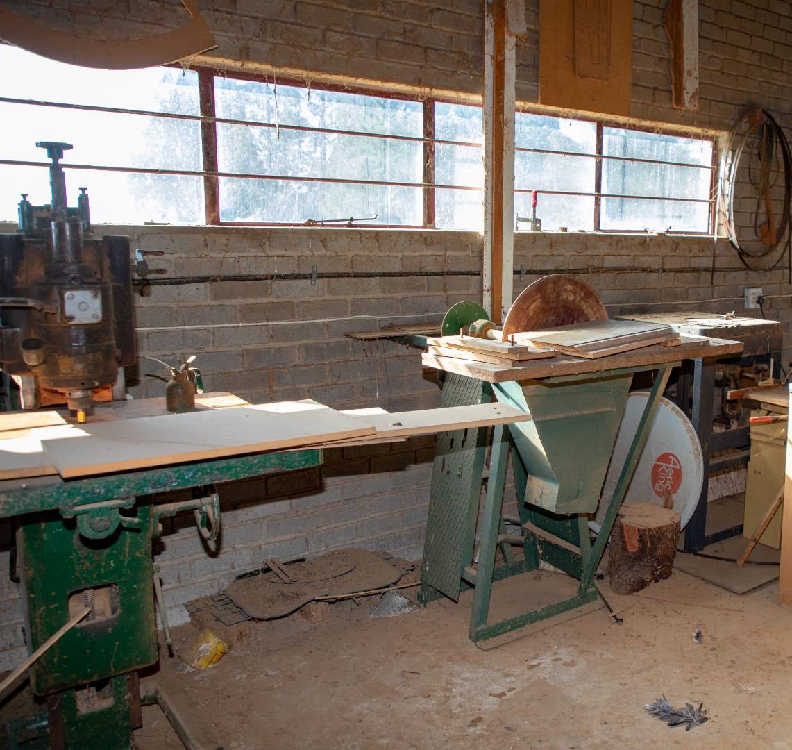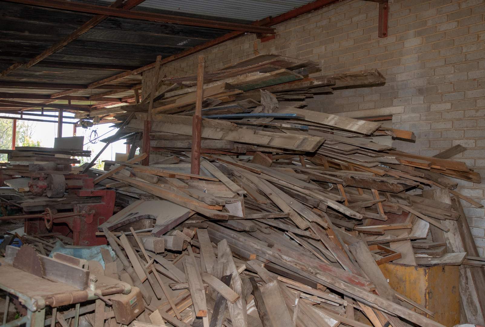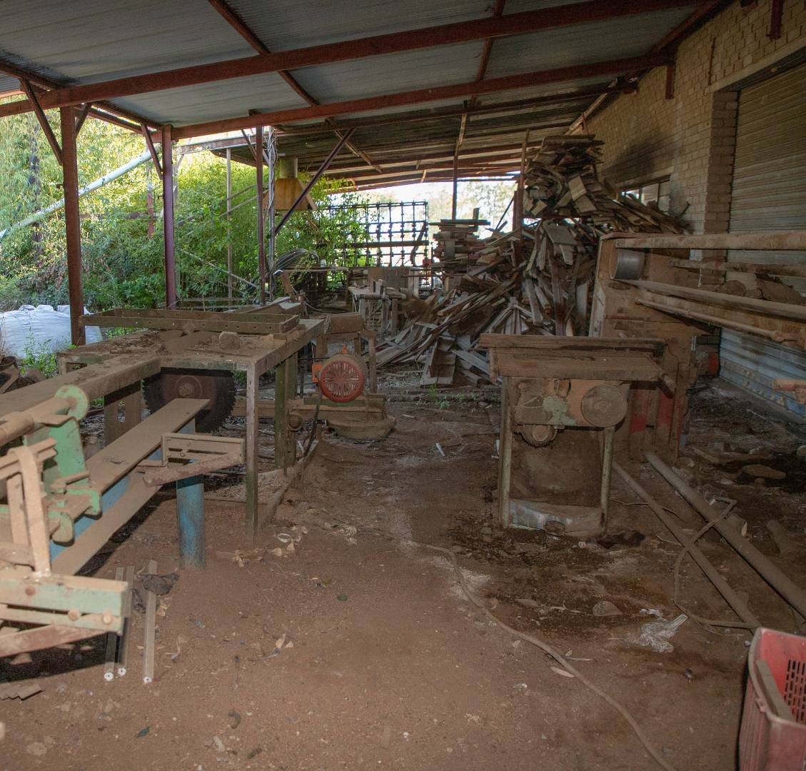 - A large under-roof area currently used for storing timber and woodworking machinery