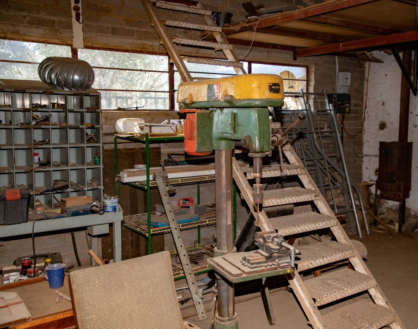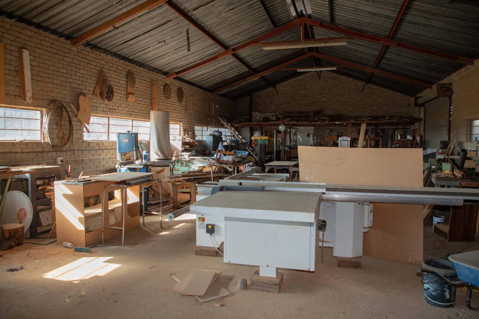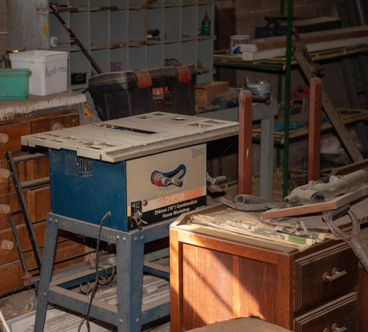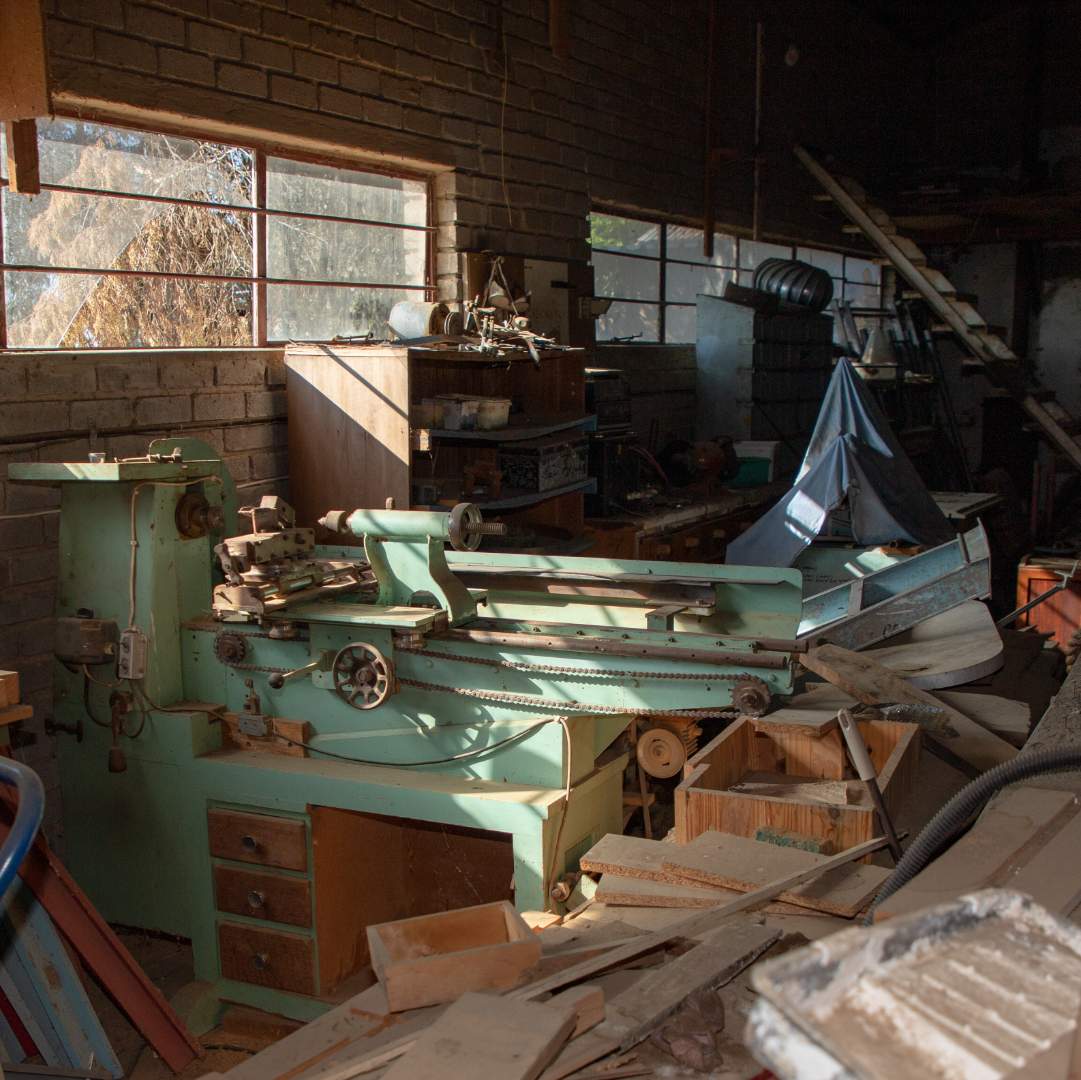 - A large under-roof area currently used for storing timber and woodworking machinery