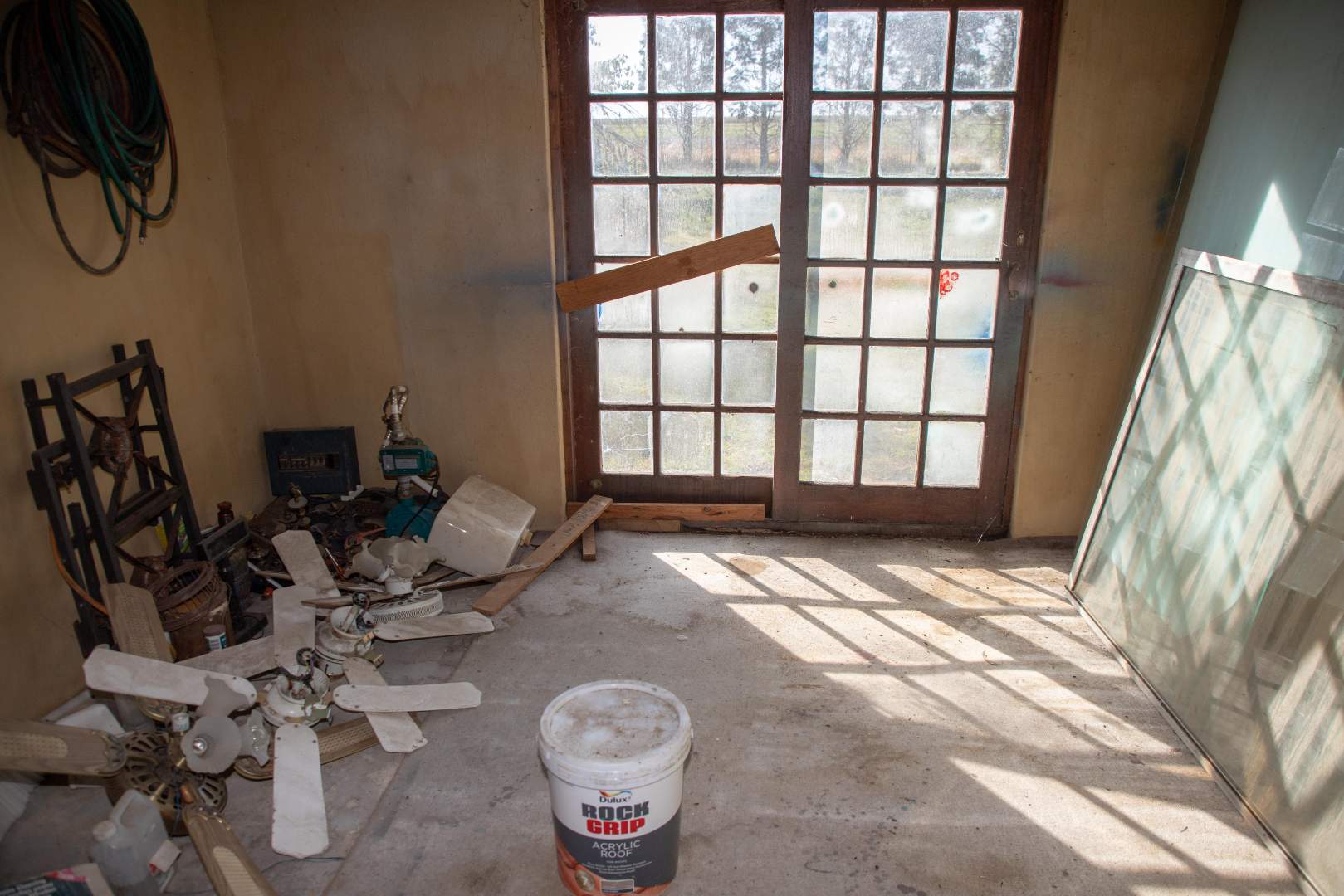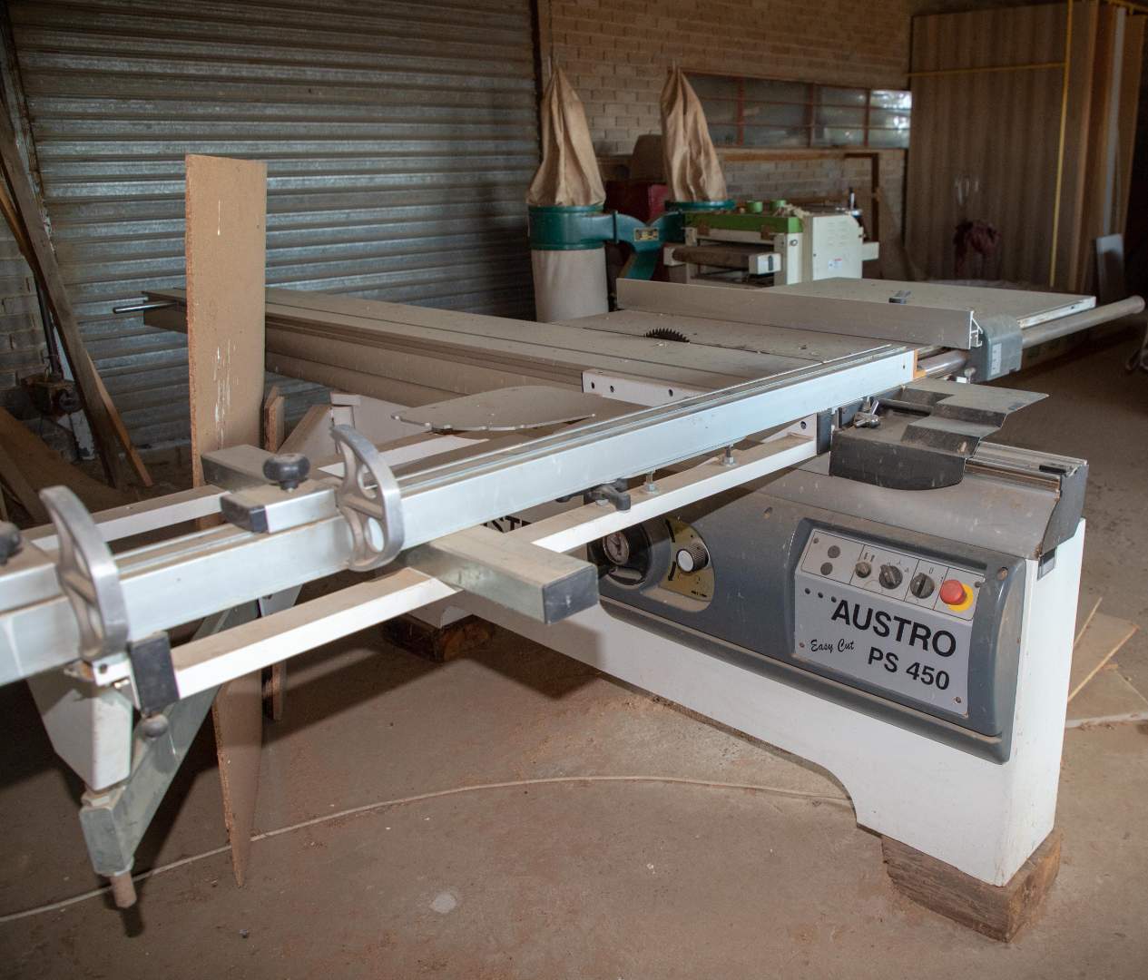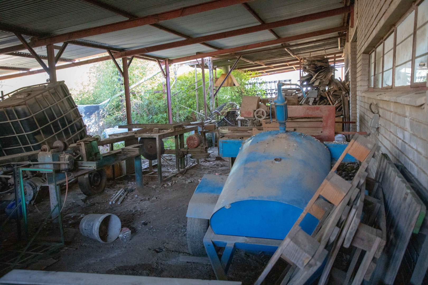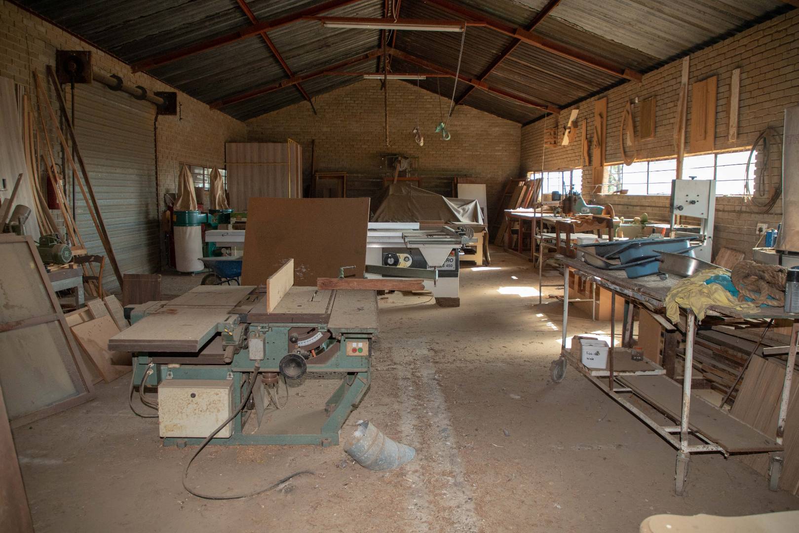 - A large under-roof area currently used for storing timber and woodworking machinery
