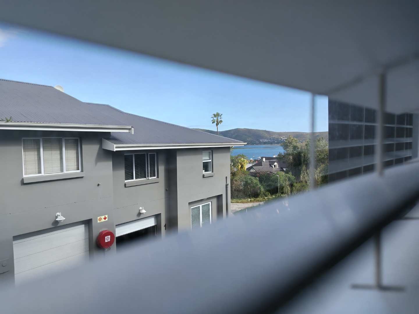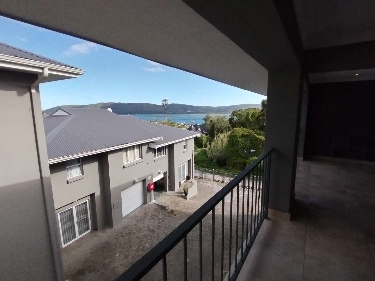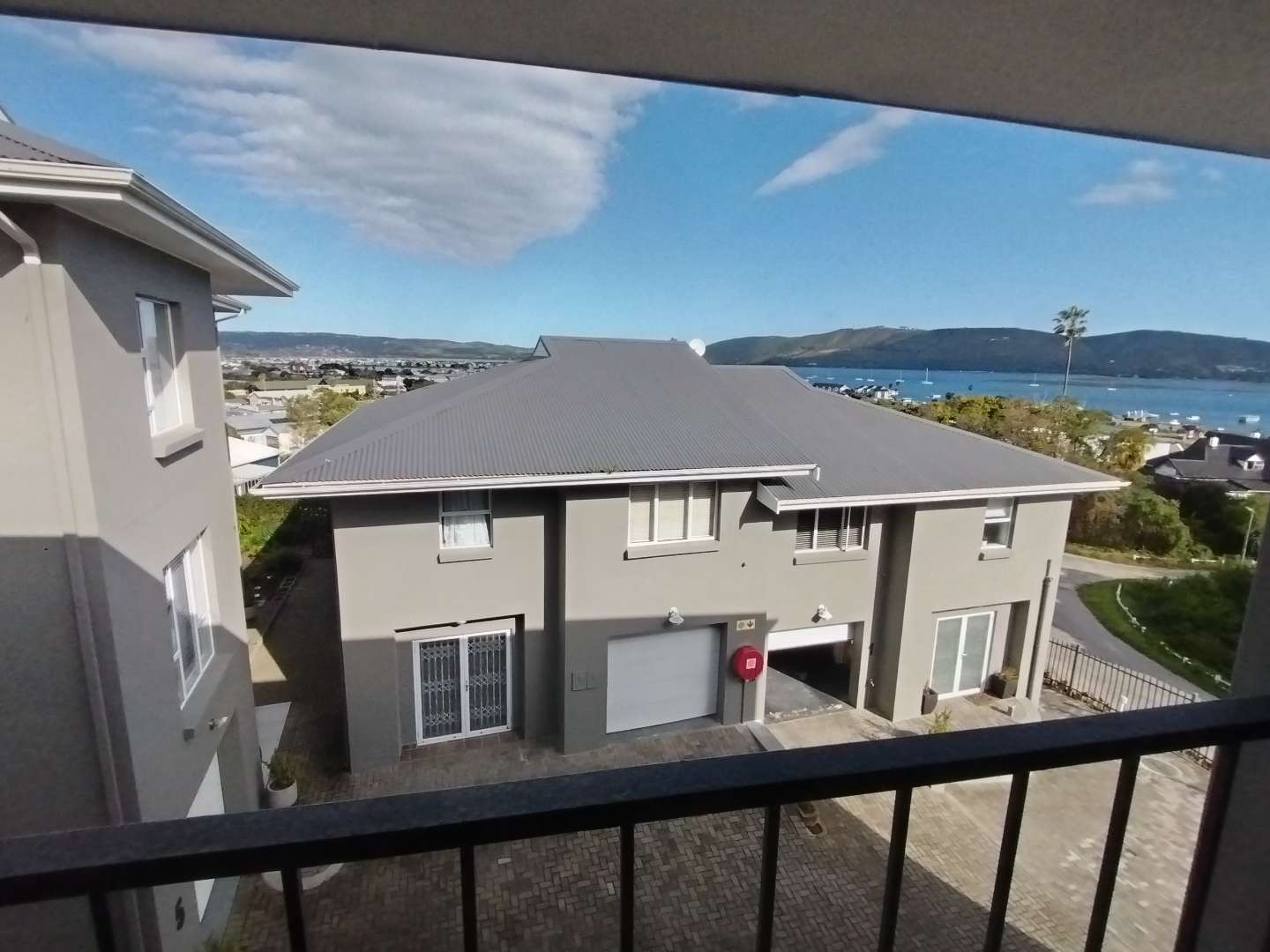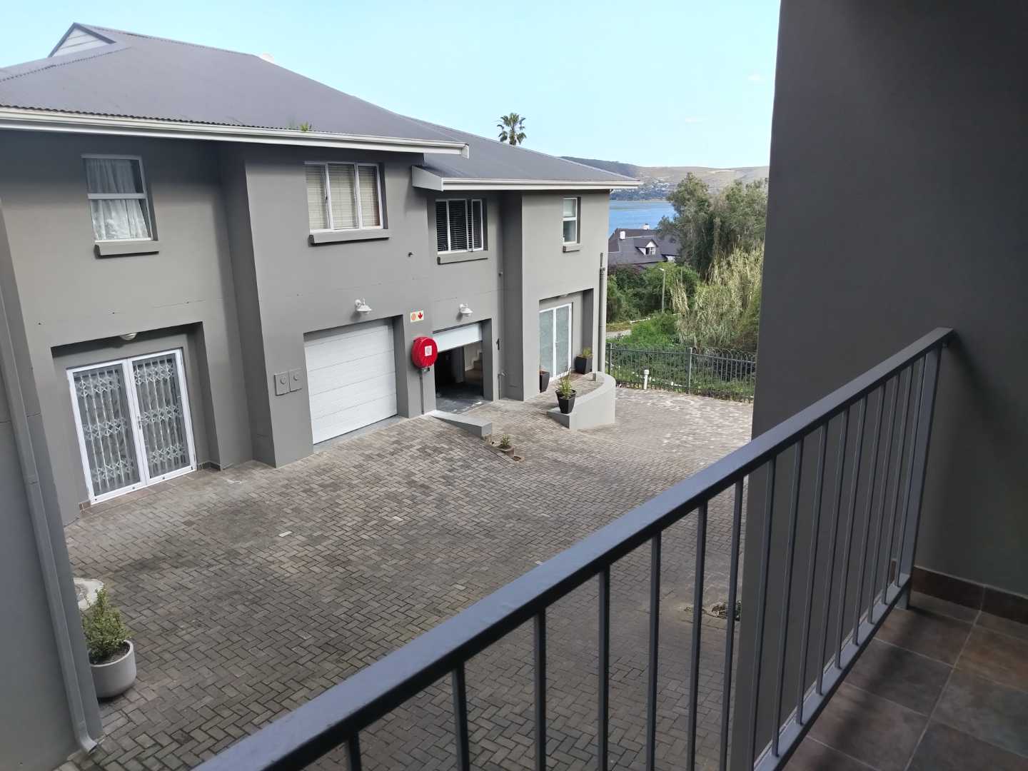 The first floor houses three bedrooms. The main bedroom enjoys its own private balcony with stunning views of the Knysna estuary, a newly renovated en-suite bathroom with a walk-in shower, and brand-new laminated flooring. The second and third bedrooms, filled with warm northern sunlight, are carpeted for comfort and share a modern bathroom with shower. Extra cupboard space in the corridor adds to the practicality of this level.