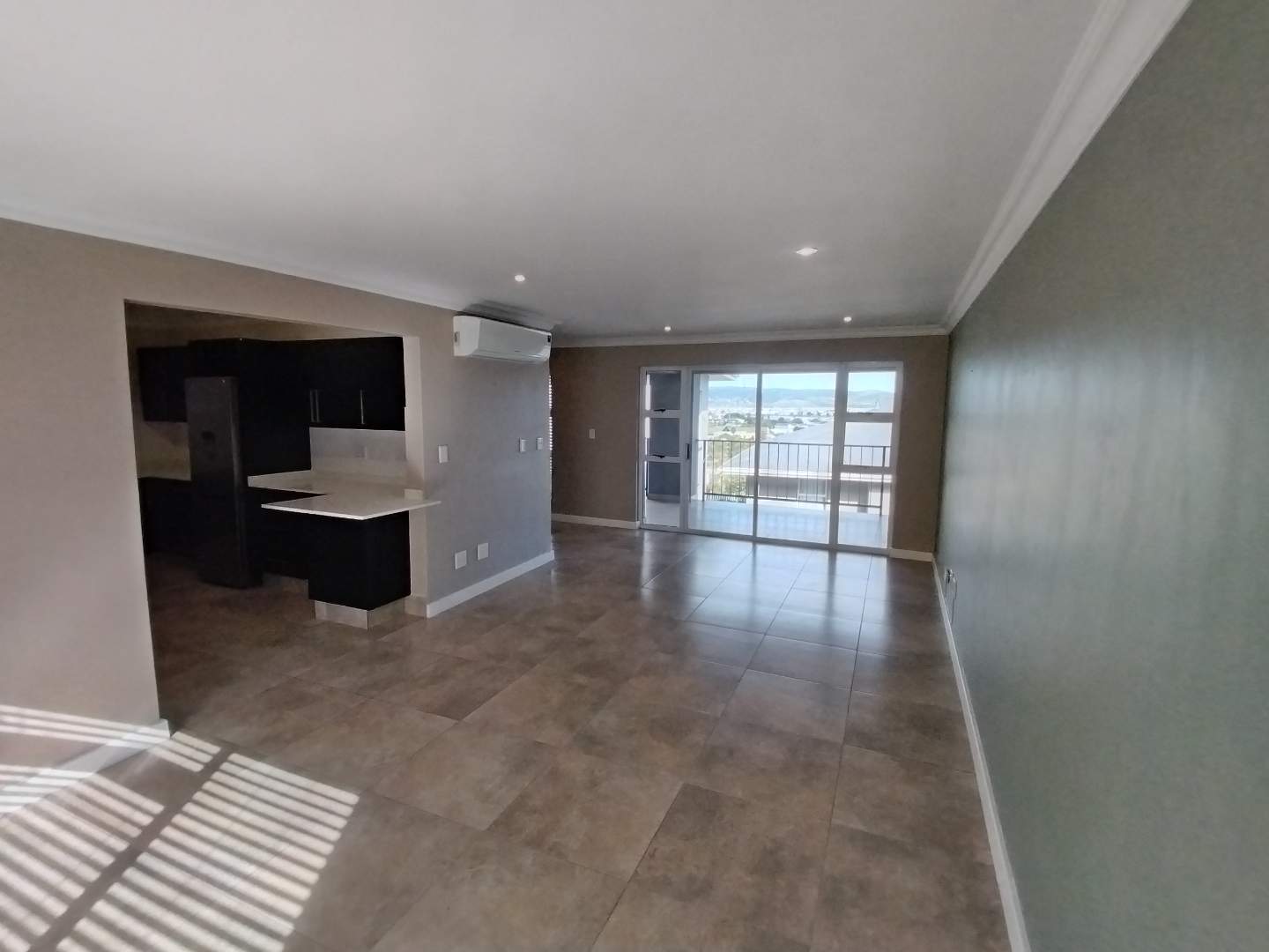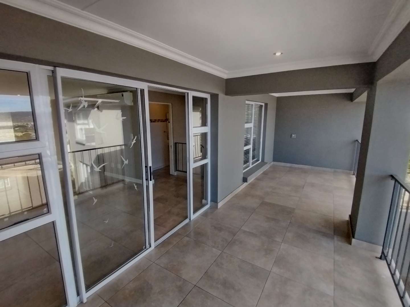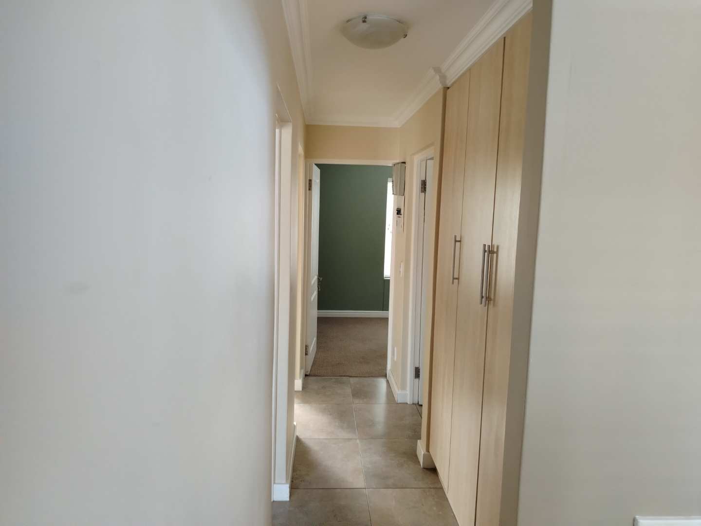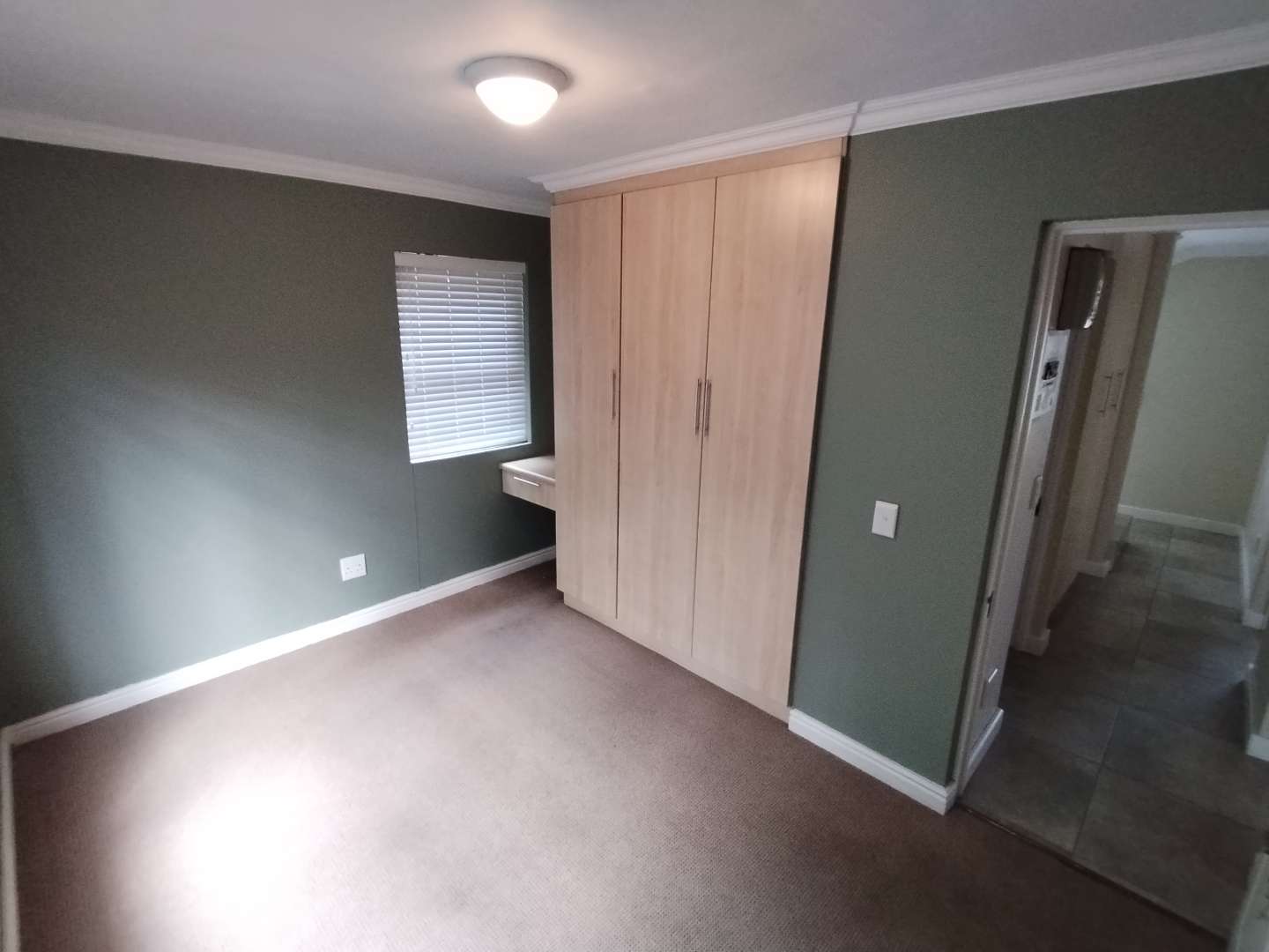The first floor houses three bedrooms. The main bedroom enjoys its own private balcony with stunning views of the Knysna estuary, a newly renovated en-suite bathroom with a walk-in shower, and brand-new laminated flooring. The second and third bedrooms, filled with warm northern sunlight, are carpeted for comfort and share a modern bathroom with shower. Extra cupboard space in the corridor adds to the practicality of this level.
