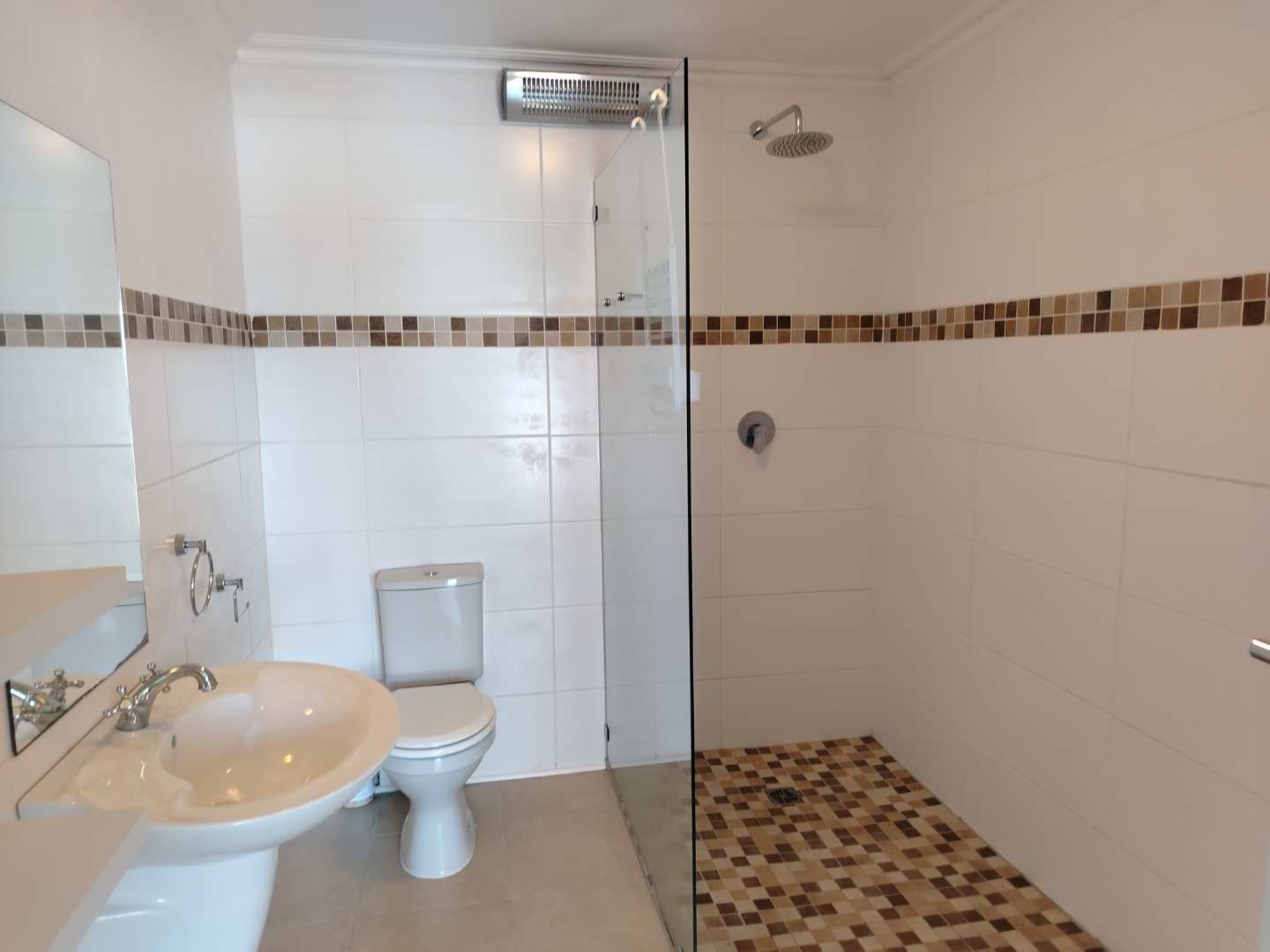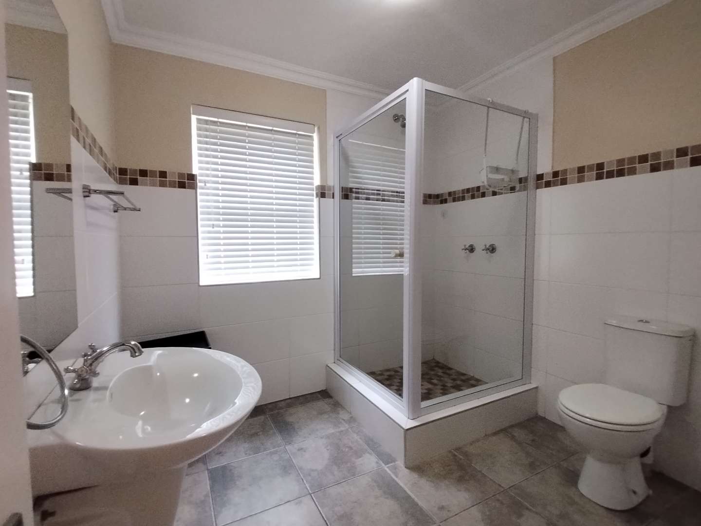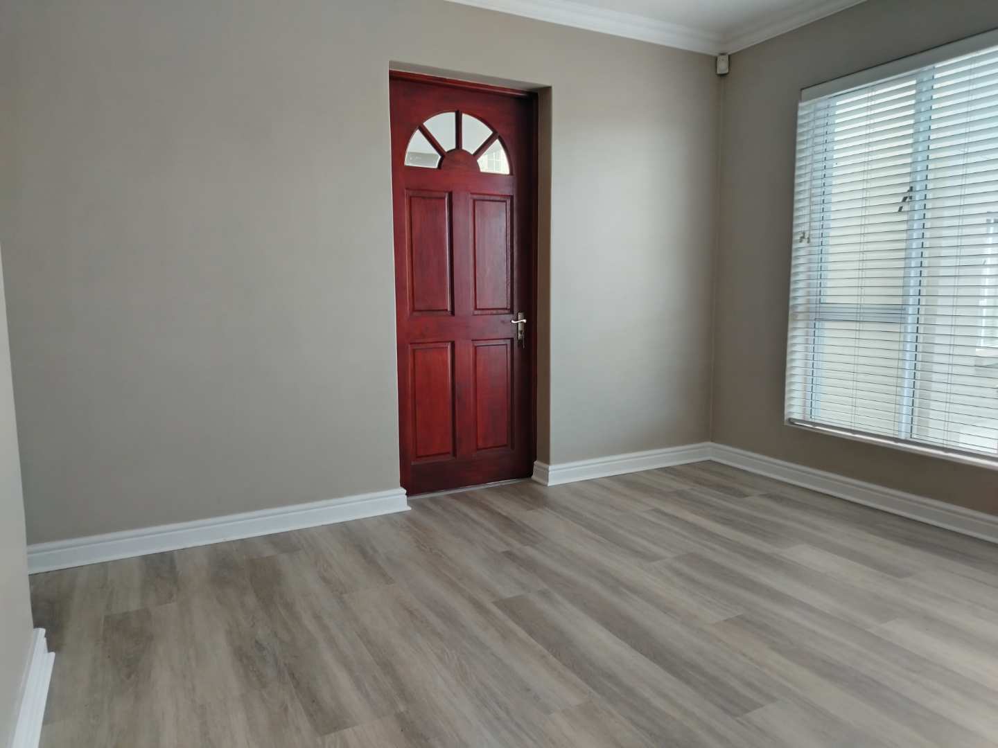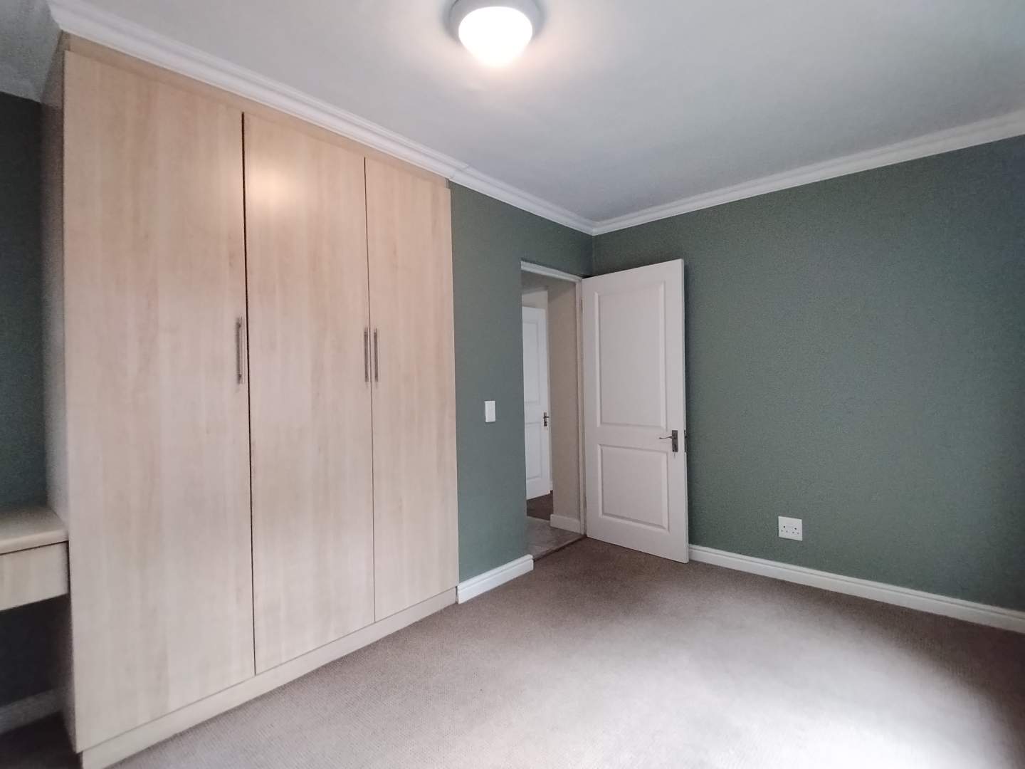 The first floor houses three bedrooms. The main bedroom enjoys its own private balcony with stunning views of the Knysna estuary, a newly renovated en-suite bathroom with a walk-in shower, and brand-new laminated flooring. The second and third bedrooms, filled with warm northern sunlight, are carpeted for comfort and share a modern bathroom with shower. Extra cupboard space in the corridor adds to the practicality of this level.