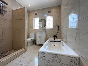 This freehold house offers three spacious bedrooms, designed with comfort in mind. The main bedroom includes a private en-suite bathroom, complete with both a bath and a hand shower for your relaxation. The second bathroom, located down the hall, also features a bath, shower, and hand shower, providing ample facilities for family and guests.
