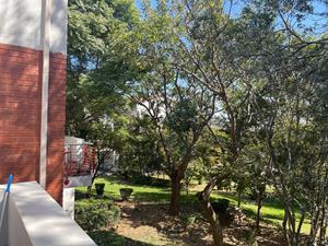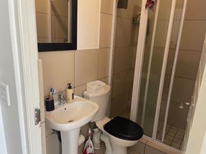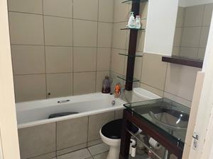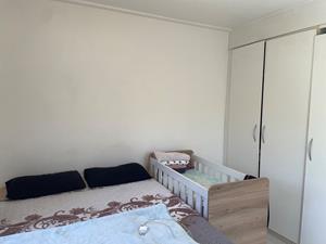 The main bedroom offers generous cupboard space and is filled with natural light. It also includes an en-suite bathroom for added convenience. The second bedroom is spacious, fitted with built-in cupboards, and features tiled flooring, creating a warm and cozy atmosphere.
