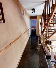Step into a welcoming kitchen complete with a dedicated wash-up area, ideal for culinary enthusiasts. The open-plan dining room seamlessly connects to two spacious rooms, perfect for entertaining guests or transforming into a study or additional living space. Relax in the cozy lounge area, and enjoy the convenience of a full bathroom. The ground floor also features two bedrooms, each equipped with built-in cupboards and carpeted for added warmth, while the rest of the house is adorned with elegant slate tiles.