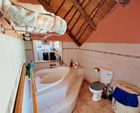 Discover your dream home with this unique double-story thatched property, offering a perfect blend of rustic charm and modern convenience. Nestled on a sprawling 1113m2 yard, this home is designed for comfort and versatility.
