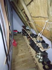 Ascend to the second floor, where you'll find a generous lounge area perfect for family gatherings or quiet relaxation. The bathroom boasts a luxurious corner bath for a spa-like experience. An additional bedroom with built-in cupboards includes a walk-in closet or storage space, offering ample room for all your belongings.