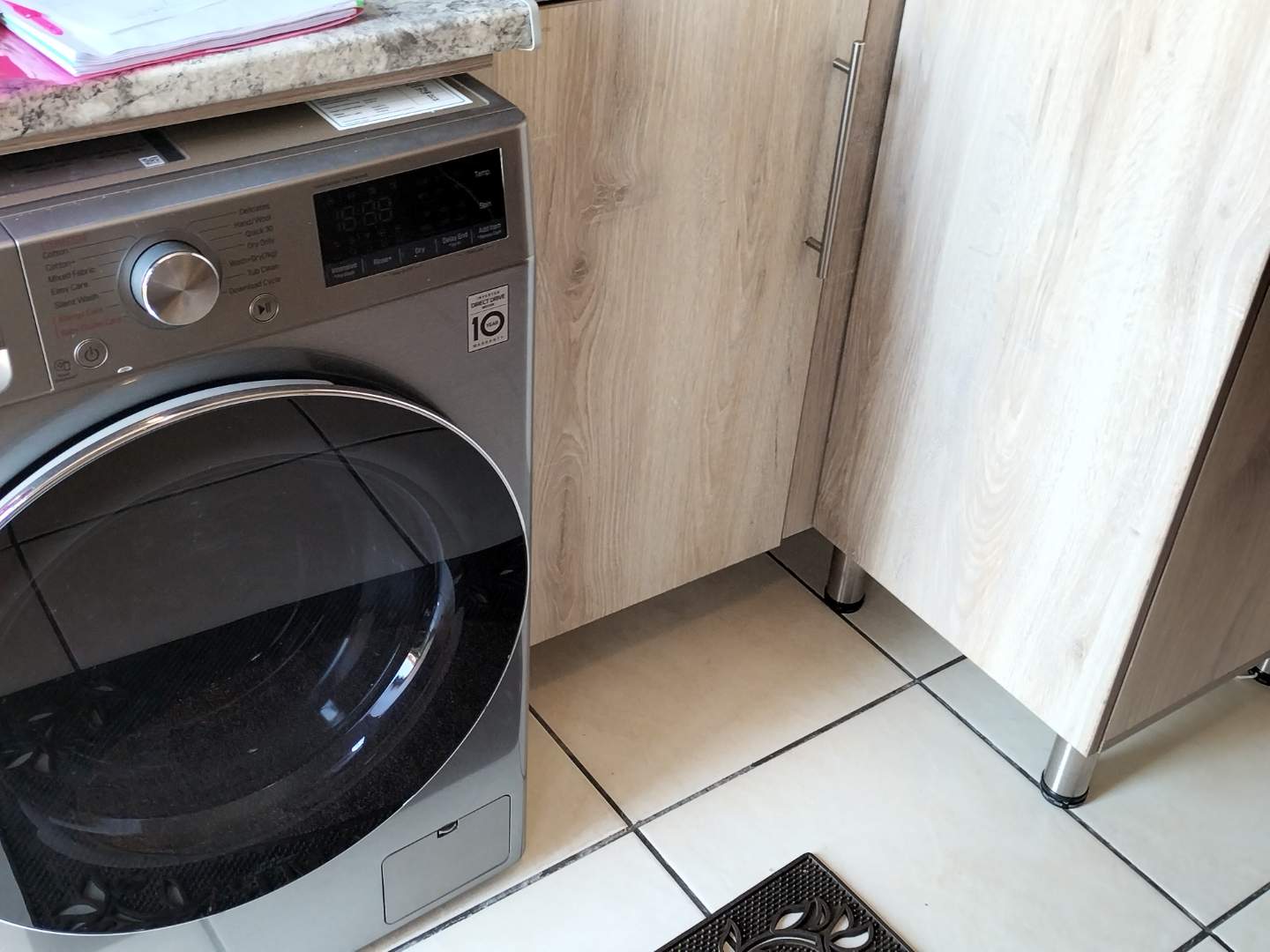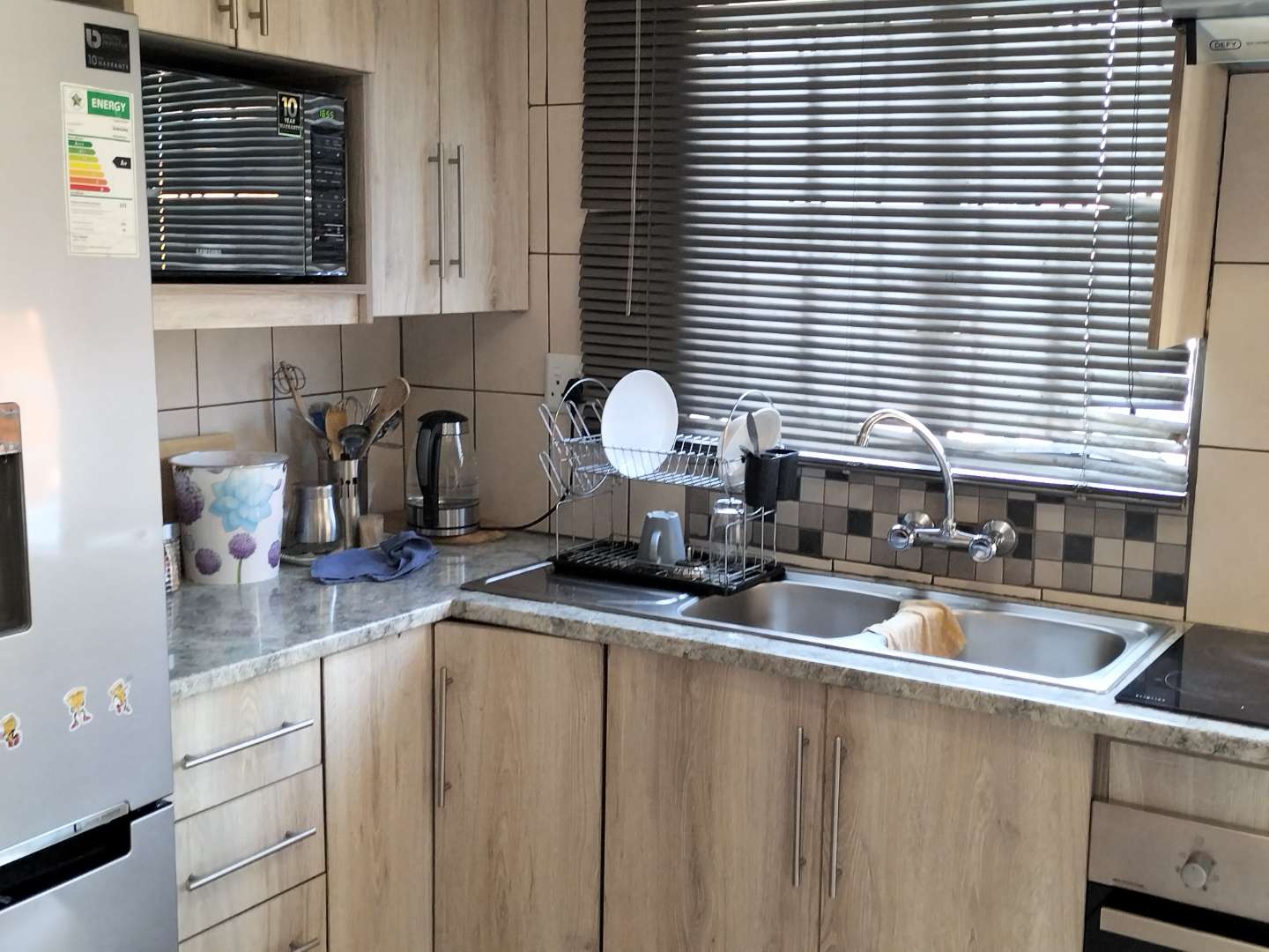 This two-bedroom house has one bathroom and an open living area. The kitchen has modern finishes, extra cupboard space and a specific connection for a front-loader washing machine. The outside area has a braai and a double carport.