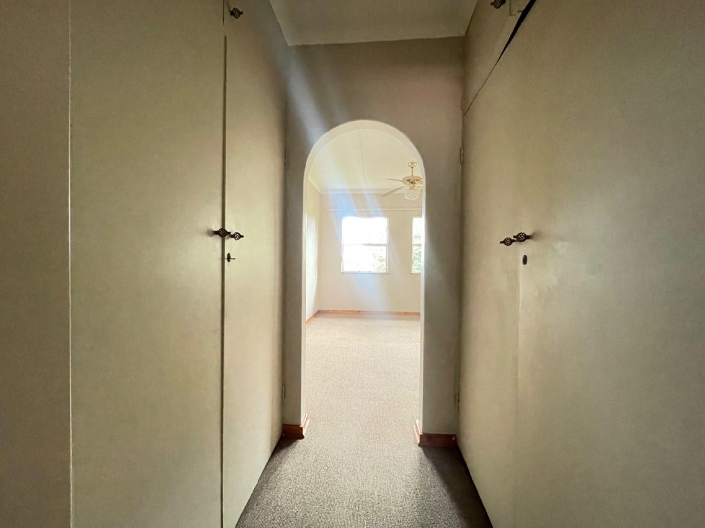 The neat kitchen is thoughtfully designed, providing ample space for culinary adventures and leading to a quaint courtyard, offering additional outdoor space for your personal touch.