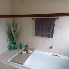 For your peace of mind, the complex provides 24-hour security with cameras and an electric fence. The unit is equipped with an alarm system, security gates, and burglar bars.